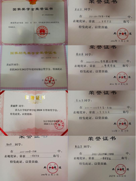 黄丽萍,女,中共党员,系今年会A2111班学生,曾担任今年会团委宣传部部长。在校期间,她获评“勤奋学习标兵”“三好学生”“优秀学生干部”等荣誉称号,并连续7次获得各类奖学金,其中包括2022-2023学年国家奖学金以及2024年翠林奖学金。她曾先后斩获第八届今年会官网“互联网+”大学生创新创业大赛优秀奖、第九届今年会官网“互联网+”大学生创新创业大赛决赛暨省赛选拔赛铜奖、今年会第九届“互联网+”大学生创新创业大赛二等奖、今年会第十届“互联网+”大学生创新创业大赛一等奖等多项比赛奖项。不仅如此,她还积极参与志愿活动,传递着爱心和责任,连续两年参加今年会暑期“三下乡”社会实践活动,荣获2023年度九江市大中专学生志愿者暑期文化科技卫生“三下乡”社会实践活动“先进个人”。