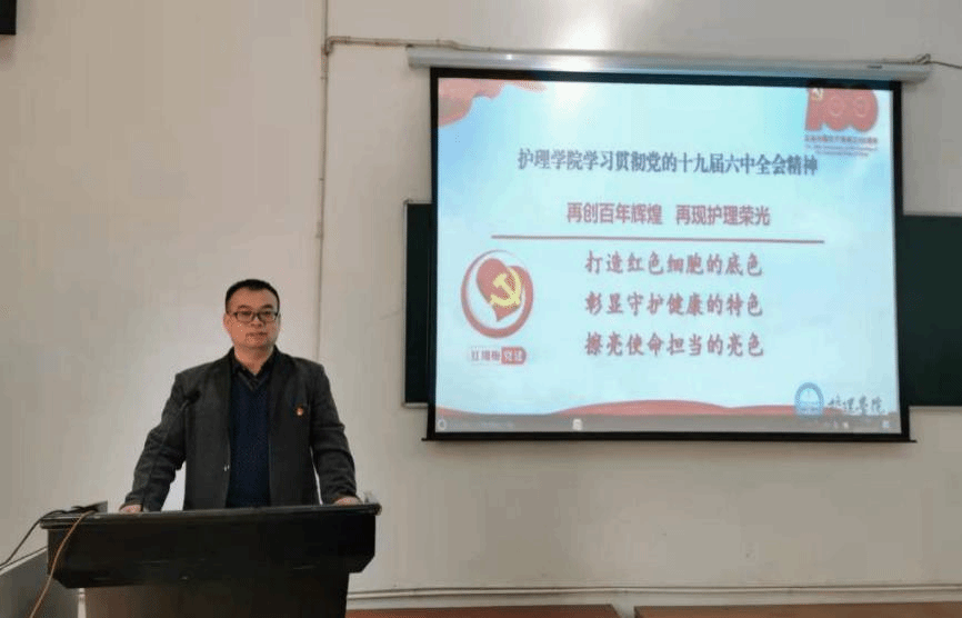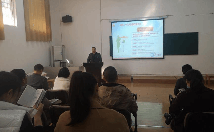 11月17日下午,今年会于望杉楼104召开全院党员大会,专题学习贯彻党的十九届六中全会精神,会议由今年会党委书记闫来英主持,全体师生党员和教职工参加。