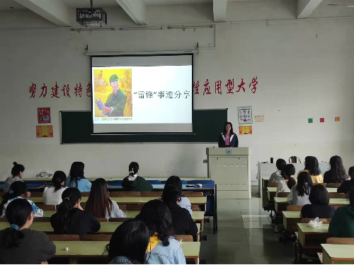 “雷锋,原名雷正兴,出身贫寒,成为孤儿的他在党的领导下,逐渐成长为一名建设祖国的青年骨干。1963年的3月5日,毛泽东在《人民日报》发表题词“向雷锋同志学习。”作为新时代青年,祖国未来的建设者和接班人,不仅要学习雷锋的全心全意为人民服务的奉献精神,更要学习他的“钉子”“螺丝钉”精神,在平凡的岗位上做到干一行、爱一行、钻一行,立足本职,尽职尽责......”在主持人谢舒婷的介绍下,大家对雷锋同志的生平事迹以及雷锋精神的深刻内涵有了更清晰的理解。