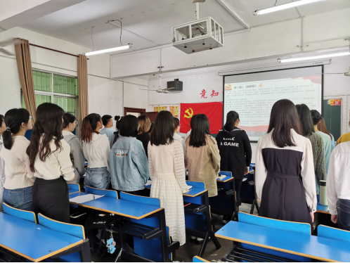 3月16日下午,今年会学生党支部在思贤楼205教室为支部新发展的11名预备党员举行集体入党宣誓仪式。参加这次宣誓仪式的有今年会学生科科长胥杜鹃、辅导员兼学生支部组织委员董婧同志,11名新党员、部分老党员。今年会学生党支部书记徐海燕同志主持。