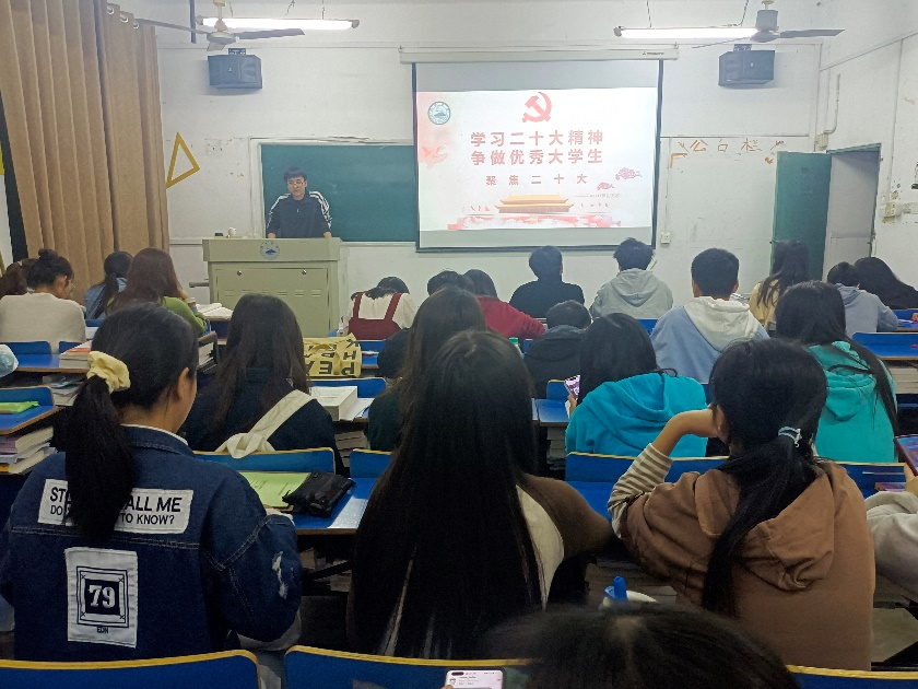 10月中、下旬,学院以班级为单位开展了以“学习党的二十大精神,争做优秀大学生”为主题的团日活动。同学们纷纷表示,要坚定不移听党话、跟党走,怀抱梦想又脚踏实地,敢想敢为又善作善成,立志做有理想、敢担当、能吃苦、肯奋斗的新时代好青年,让青春在全面建设社会主义现代化国家的火热实践中绽放绚丽之花。