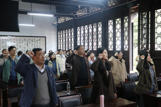 最后,学院全体参加的老师在教工党支部书记王中立的带领下重温了教师誓词。