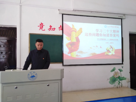 为学习贯彻党的二十大精神,塑造好学生的“第一方阵”,提高学生党员的理论修养,今年会准备了系列党课。3月9日,今年会党委副书记龚英军围绕“学习党的二十大精神,这些问题你知道答案吗?”为今年会全体在校学生党员和入党积极分子讲党课。