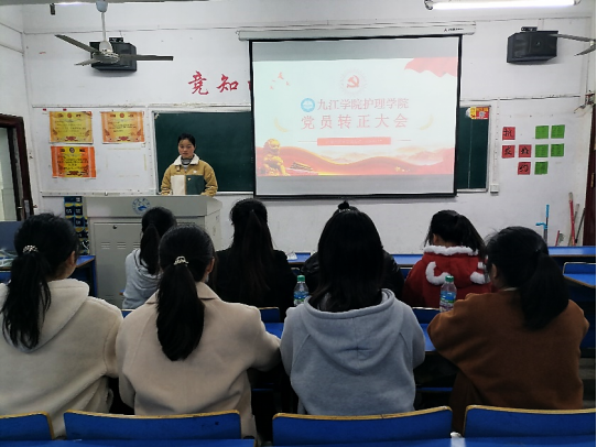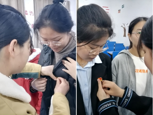 会上,为新一批预备党员佩戴了党徽,希望她们在考察期间不忘初心,不断锤炼自己。