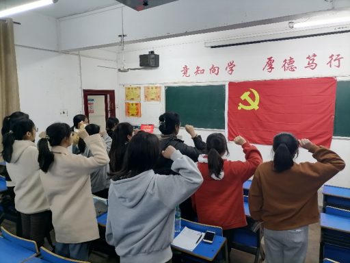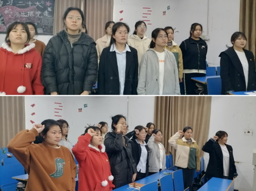会上,全体齐唱《国际歌》,并重温入党誓词。