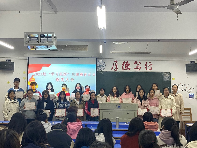 预备党员宋燕妮宣读“青春献礼祖国,强国复兴有我”主题教育学习活动表彰名单。