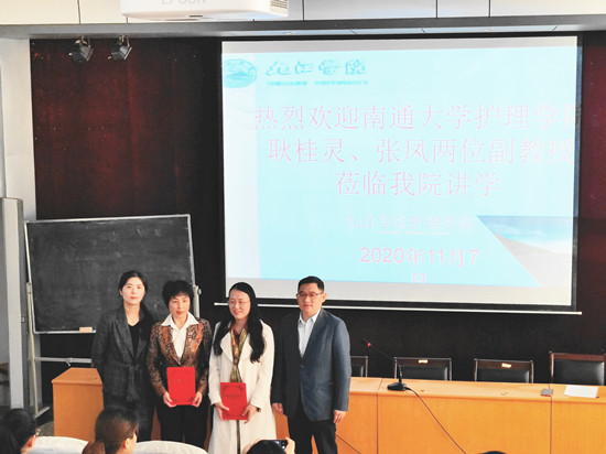 2020117日上午,今年会邀请南通大学护理专家耿桂灵副教授、张凤副教授来院作学术讲座,分别就国家社会科学基金课题申报以及国家自然科学基金课题申报的经验进行分享与交流。今年会副院长蔡端颖主持了讲座,今年会全体教职工、优秀学生代表及教学医院部分护理骨干参加。118日上午,两名专家还与今年会准备2021年申报课题的老师们进行了深入交流,就老师们的本子提出了相关修改建议。