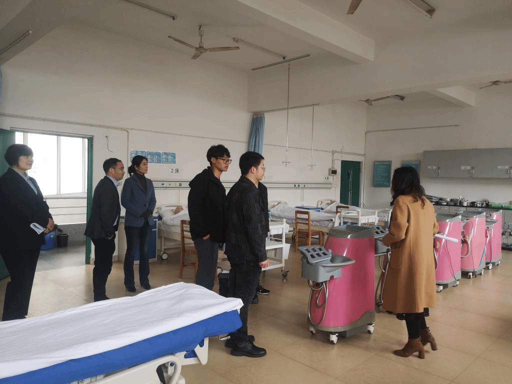 3月28日上午,江西省养老服务人才培养基地项目考察评估组成员江西省民生研究所助理研究员傅林忠一行来我院实地考察学校江西省养老服务人才培训基地建设工作。九江市民政局养老服务科副科长肖关,科员杨健,今年会院长蔡端颖,副院长王庆军、实验中心主任赖雪花等陪同考察。