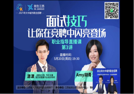 为了帮助大学生适应就业新形势,找到合适的职业,缓解就业压力,“就在江西”主动谋划,精准施策,开启职业指导新模式。5月20日19:30,邀请了专栏直播潇潇老师、国际咨询公司资深领导力顾问的胡青老师通过“网络直播+线上互动”的方式,开展了一场大学生职业面试指导活动。今年会学生积极观看。