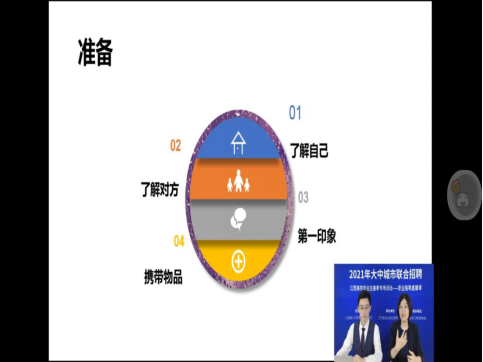 我们要注重面试的第一印象,从面试类别,面试礼仪,沟通原则,讲话要点四个方面进行模拟,引导大家熟悉面试流程,掌握面试方法,提高面试技巧。