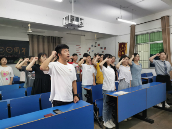 6月11日,今年会学生党支部于思贤楼205召开入党宣誓仪式。学生党支部书记徐海燕,正式党员代表郑安静、孟涵、郑巧美、刘宇静以及21位新党员参与仪式。会议分为奏唱国际歌,徐海燕同志宣读参加入党宣誓的预备党员名单、预备党员宣誓以及预备党员代表陈梦盈同志发言等几个环节。
