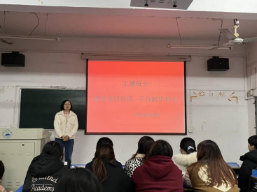 主题班会中,各班班主任向同学们介绍了学院历来重视学风建设。学风是大学精神的集中体现,是教书育人的本质要求,是高等学校的立校之本、发展之魂,优良的学风环境是提高教育教学质量的根本保证。学风建设是高等学校永恒的主题,是全面贯彻党的教育方针,是高等学校实现培养目标的重要条件,是衡量办学水平的重要标志。通过学风建设活动的开展,改良学生的学习习惯,提高学生的学习兴趣,促进教学质量的提高,营造了一个积极向上的良好学习氛围,提高了大家对学习的重视。