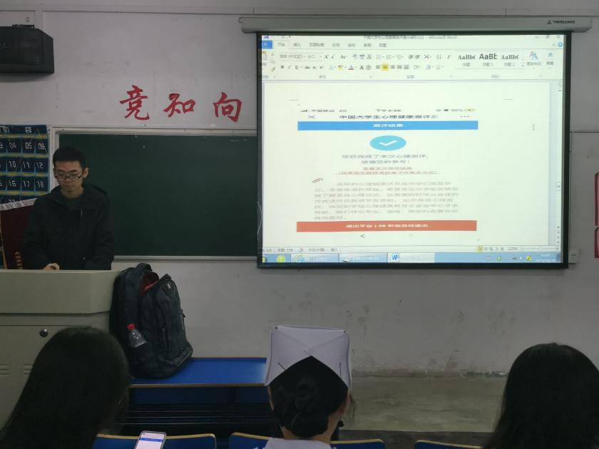 此次心理健康普查测试以班级为单位,通过网上调查问卷的形式展开。现在,加强大学生心理健康教育,是新形势下改进大学生思想政治工作、全面实施素质教育的重要举措。因此加强大学新生心理健康教育工作,心理健康普查显得尤为重要。心理普查工作的开展,为促进学生身心健康,增强心理调适能力,及学校加强和改进大学生思想政治教育工作提供参考。心理测试主要内容有:以题目的形式测试同学们最近的心理状态和内心活动,以便学校更好的指导同学们怎样引导自己的思绪,控制好自己的情绪。整个过程同学们积极配合,认真作答,都显示出了对心理工作的重视与支持。