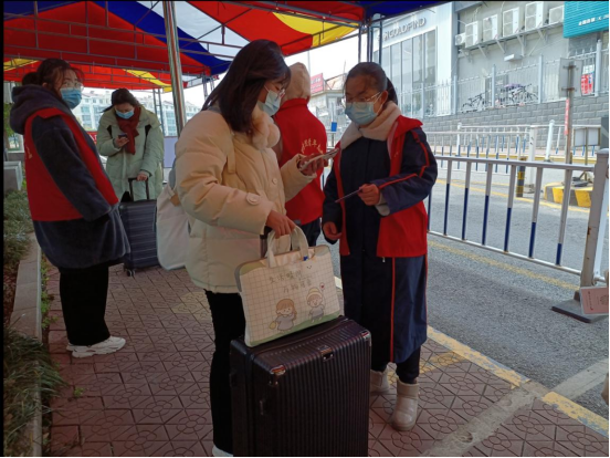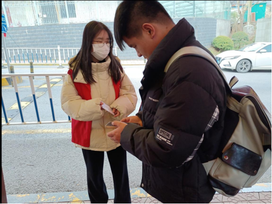 志愿者们统一着装并规范佩戴好口罩到达活动地点进行接班。活动中,志愿者们在值班老师的带领下分工合作,对每一位返校同学进行体温检测,有序查验返校同学的赣通码、行程码、核验身份证、学生证或校园卡,省外同学返校还进行48小时内核酸检测阴性证明的查验并引导其至校核酸检测点进行返校核酸检测。