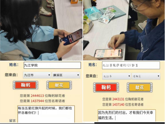 自古以来,就有清明祭奠祖先,缅怀先烈的老传统。清明祭奠不仅仅是个人的祭拜先祖,也是民族精神文化的一种传承,更是个体与历史连接的精神脐带。此次网上祭奠英烈活动由江西省文明办主办,同学们通过关注“文明江西”公众号进入活动页面并在页面内填写相关信息后点击鞠躬、献花或留言完成网上祭奠英烈活动。“网上祭英烈,不忘烈士忠骨,人民永把英烈放心中。”、“青山埋忠骨,史册载功勋。革命先烈浩气长存、永垂不朽!”、“缅怀先烈,追忆逝者,奋进前行!”这一句句留言都包含着对先烈的无限敬意和对祖国的无限热爱。除此以外,今年会红细胞青年骨干培训班也通过观看视频的方式学习先烈事迹,感受到先烈们的英勇无畏,传承其爱国与无私奉献的精神。