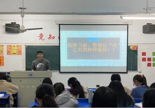 为了进一步加强疫情防控期间防范治理电信网络诈骗教育工作,增强同学们的安全防范意识,3月27日晚,今年会开展以“疫情当前,警惕以‘疫’之名的种种骗局”为主题的班会活动。