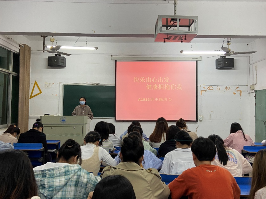 为进一步提高大学生的心理素质,促进大学生的身心健康, 5月8日晚,今年会于思贤楼举行了以“快乐由心出发,健康拥抱你我”为主题的主题班会。本次活动由团支书组织召开。