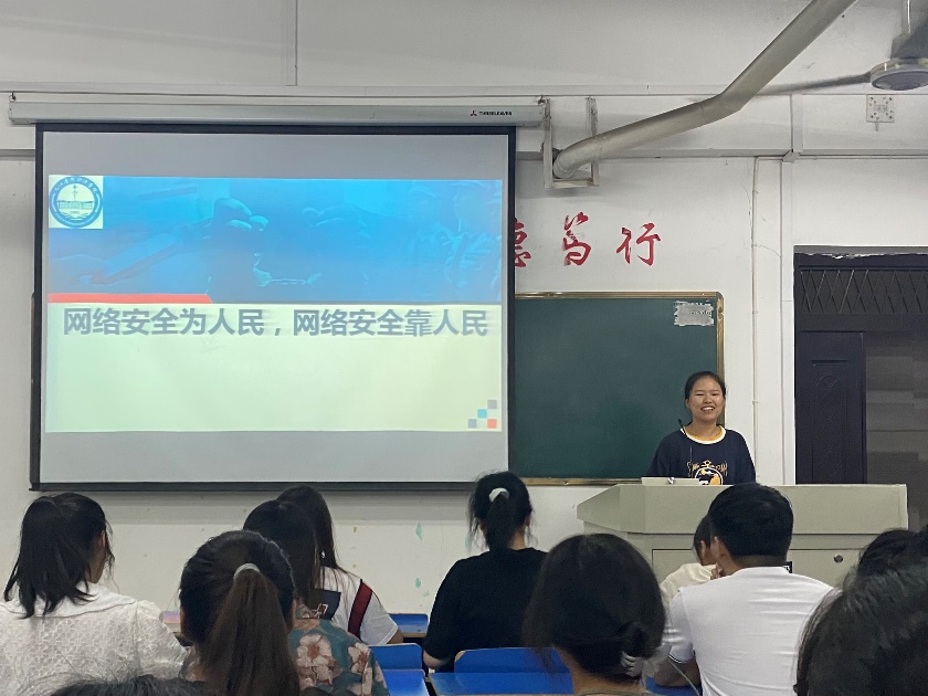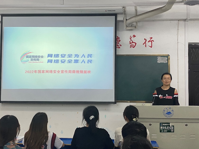 今年9月5日至9月11日是第九届国家网络安全教育周,“网络安全为人民、网络安全靠人民”是此次网络安全宣传周的主题。防范网络诈骗、暴力、威胁,强化学生“每个人都是网络安全的责任主体”意识,班会呼吁学生们坚守法律底线,做网络法制的建设者; 强化安全意识,做网络安全的维护者;崇尚社会公德,做网络文明的推动者,积极唱响主旋律,传播正能量,为党的二十大的胜利召开贡献自己的青春力量。