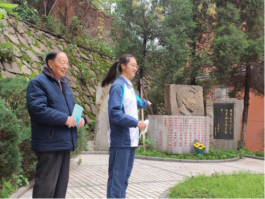 怀感恩之心,担青春使命,做现代中国的有志青年。在庄严肃穆的气氛中,郑佳莉、黄亚琼代表全体同学向欧阳泉平烈士纪念雕像献花,全体人员庄严肃立,列队整齐,向革命英烈致敬默哀。学生代表乐思源发言:“年年祭扫先人墓,处处犹存长者风”……欧阳前辈的英雄事迹将永远激励我们九院学子前进。