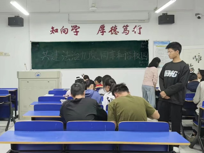 为全面学习贯彻党的二十大精神和习近平法治思想,切实提高大学生法纪意识,推动依法治校,10月13日晚,今年会开展了以“共建法治九院,同享和谐校园”为主题的学生手册知识竞赛。