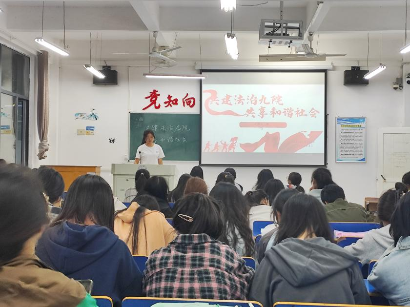 秉德安民兴中华,依法治国铸伟业。为贯彻落实法治中国建设,大力弘扬法治精神,10月15日晚,今年会于晚点名教室开展了以“共建法治九院,共享和谐校园”为主题的主题班会活动。