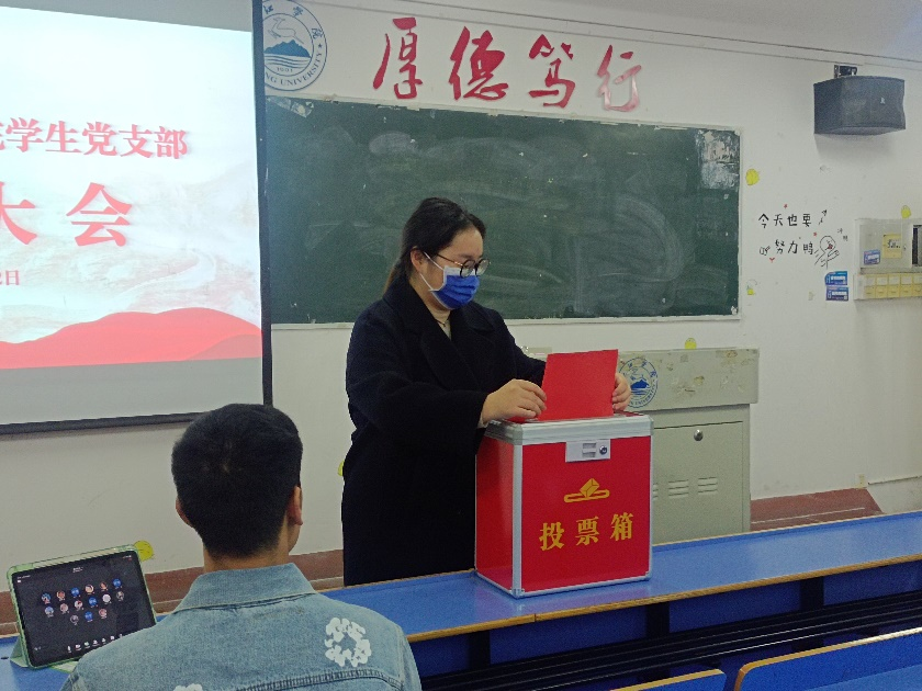 大会一致通过了学生支部委员会工作报告。大会按照选举程序由全体正式党员无记名投票选举产生了新一届今年会学生党支部委员会委员。