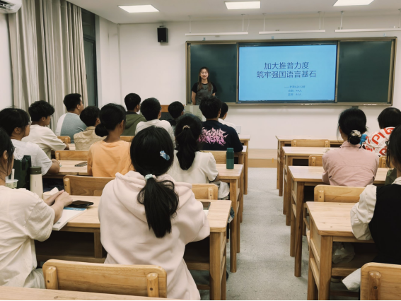 活动中,各班主讲人积极引导,向同学们介绍普通话推广的重要意义。通过播放一段视频,让同学们了解汉语普通话的政策法规、形成历程和普通话测试的具体流程。随后以问答的形式,纠正大家的发音问题。现场气氛活跃,同学们纷纷表示,要从日常的交流开始,用标准的普通话传递思想、表达情感,为筑牢强国语言基石贡献自己的一份力量。