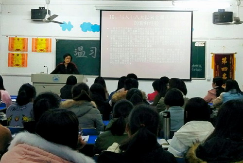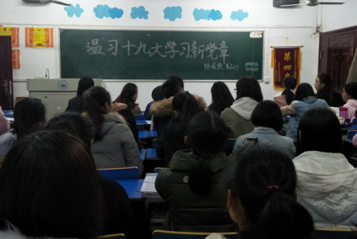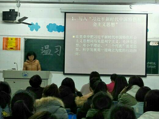 课堂上,张钦老师首先带领大家温习了党章的主要内容,并从习近平新时代中国特色社会主义思想、“四个自信”等十个方面向大家介绍了十九大党章的修改和新增内容。随后张钦老师鼓励大家认真学习《中国共产党党章》,这让我们对党的性质、理想目标、指导思想、基本要求、党员义务权利有了更深的理解。