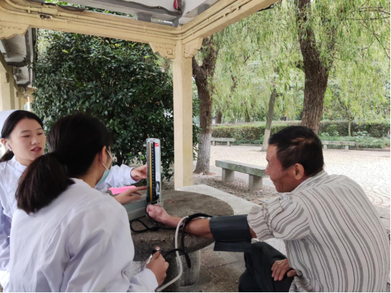 下午两点,志愿者们准时到达活动地点——甘棠湖公园,全面展开义诊和保护环境的活动。活动伊始,志愿者们通过口头宣传与讲解吸引了一大批居民,使活动能够有序开展。活动中,志愿者们按照安排分为两组,湖边小亭内,一组志愿者热情的为公园中活动的老人量血压并耐心回答老人提出的健康问题;而另一组志愿者则围湖清理,为公园的干净整洁奉献出了自己的一份力量。