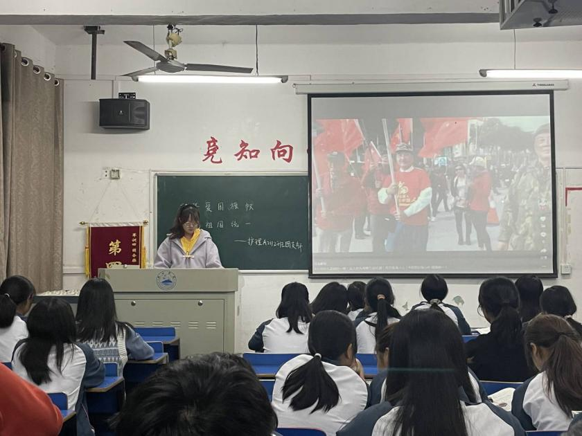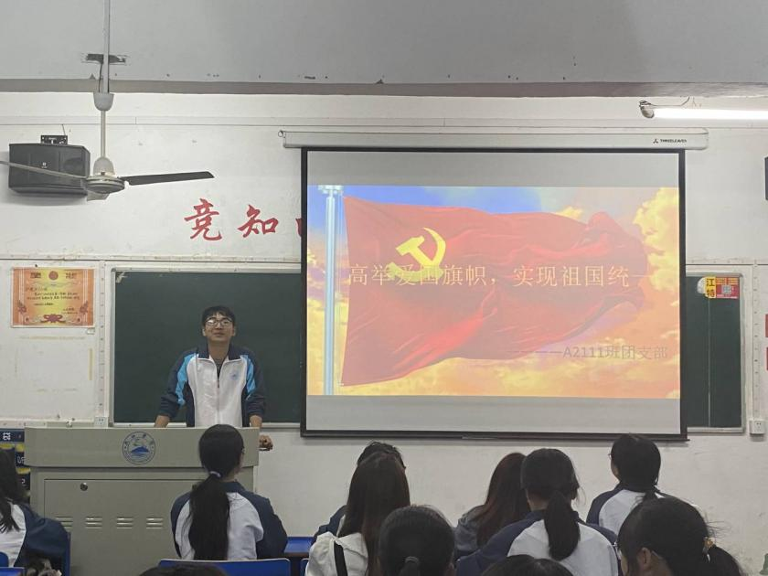 在团日活动中,团支书通过多种形式从近期海峡两岸实事、国家统一好处、对统一的支持与期待等方面展开讲述。中国历来是一个不可分割的整体。历史发展进程无可辩驳地证明:台湾是中国一部分、两岸同属一个中国的事实,是任何人任何势力都无法改变的;国家强大、民族复兴、两岸统一的历史大势,是任何人任何势力都无法阻挡的。台湾问题也必将随着民族复兴而解决。本次活动中,各班团支书通过带领大家观看两岸关系发展的视频,展现当今中国在未来征程上巩固国家团结所作出的努力,在场同学无不深受感触。