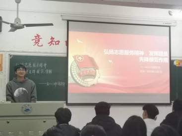 活动开始,各班主讲人向同学们介绍志愿服务精神的主要内涵与重大意义,并通过相关抗疫视频中青年志愿者的无私表现激发同学们的崇敬心理,让同学们对志愿服务精神有更深刻的了解;倡议同学们利用课余时间,积极投身到社会的公益活动中,充分发挥团员先锋模范作用、弘扬志愿服务精神,争做新时代有志青年。同学们也纷纷表示,在之后的大学生活中,要积极参加公益活动,为建设和谐社会贡献自己的一份力量。