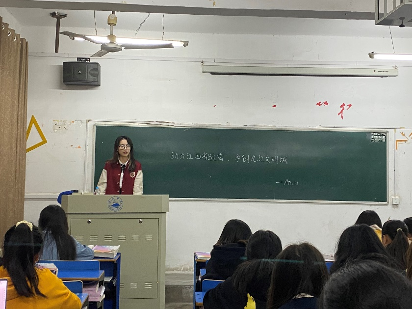 为助力办好省运会,争创九江文明城,弘扬志愿奉献精神,10月30日,今年会各班组织开展了“助力江西省运会,争创九江文明城”的主题团日活动。