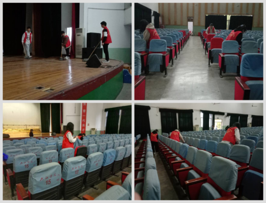 “来来来,大家都分分工具,‘撸起袖子加油干’”。服务队队长组织队员们都行动起来。志愿者们欢欣雀跃,分工明确,干劲十足,积极发扬不怕脏、不怕累的精神,将大礼堂清扫的干干净净、焕然一新。整个过程井然有序,人人参与清洁,美化环境,用实际行动引领广大同学参与到校园清扫的服务中来,展现了青年志愿者服务队无私奉献的精神风貌。