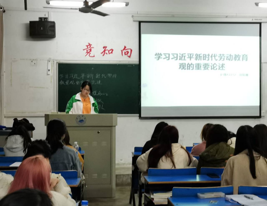 会上,各班团支书由浅入深,以新时代劳动模范的故事为出发点,王进喜、张秉贵、李素丽、郭明义、张桂梅···一个个时代楷模奋战在普通平凡的岗位,却做出伟大非凡的业绩。他们身上所展现出的爱岗敬业、艰苦奋斗、勇于创新、淡泊名利、甘于奉献是劳模精神的重要内涵,更是习近平总书记关于劳动精神重要论述的生动诠释,具有鲜明的特色、科学的内涵与时代价值。一帧帧画面令人动容,一首首歌谣娓娓动听,在潜移默化中推动习近平新时代劳动教育观落地生根,开花结果。