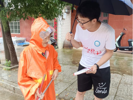 阴雨连绵,不挡“红”心。绵绵细雨浇不灭“红细胞”服务队成员提高老年人识骗防骗迫切的“红”心。通过普及养老诈骗知识、发放宣传单、案例讲解等形式生动形象地向老年人揭露了犯罪分子常用的骗术,叮嘱老年人要保持清醒头脑,遇到可疑情况要与子女沟通商量。老人积极询问,“红细胞”们耐心答疑,声情并茂的讲解与通俗易懂的表达汇聚成一场场精彩的反诈骗“课堂”,潜移默化中帮助老年人提高防诈骗意识。