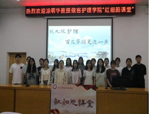 讲座中,涂明华教授旁征博引、深入浅出的进行了精彩讲解。从护理发展历程、中国护理教育的先驱、九医精神与校风、护理办学历程、医者精神等五个方面向同学们介绍了护理的过去与未来发展的前景。博爱奉献是护理人文精神的集中体现,涂明华教授强调“医德为先,博爱奉献”以江西省现三位南丁格尔奖获得者章金媛女士,邹德凤女士,胡敏华女士为榜样,鼓励学生们注重人文,提升素质,传承医护精神。