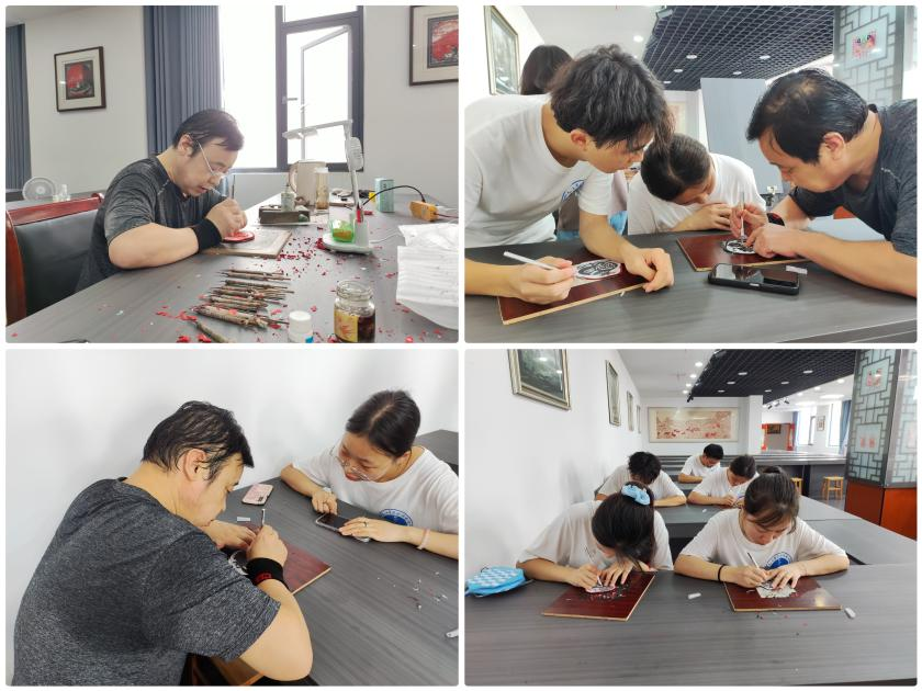 以赤诚之心,礼敬中华优秀传统文化,7月3日“红细胞”带着求知欲和探索欲到达瑞昌剪纸博物馆,映入眼帘的是经典的徽派建筑——白墙黛瓦马头墙,成员们兴趣高涨,心情激动,踏入非物质文化遗产的圣地。讲解员从六个文化主题展现瑞昌的剪纸历史足迹和发展传承情况。“红细胞”细细观摩欣赏剪纸作品,了解到剪纸有去线留面的阴刻、去面留线的阳刻,与雕刻技艺存在异曲同工之妙。在剪纸体验环节中,具有三十年从事经验的焦新魁师傅从最简单的刺、拉手法开始传授,让“红细胞”慢慢接触到剪纸的乐趣,感受剪纸艺术的无穷魅力。体验结束后,“红细胞”展示自己的剪纸作品和焦新魁师傅合影留念。