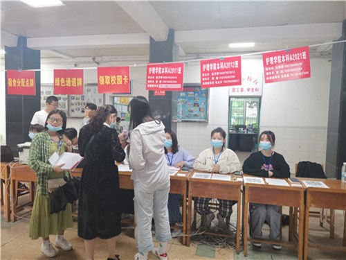 今年会积极践行各项疫情防控措施,所有迎新人员均佩戴口罩,进入学校及宿舍皆有卡点测量体温。新生入校后,迎新志愿者会带领他们报到注册、入班群、领取校园卡、办理热水卡以及搬行李等。虽因疫情防控原因家长无法进入生活区,但迎新志愿者热情地帮助新生搬运行李,并带领他们去其寝室。