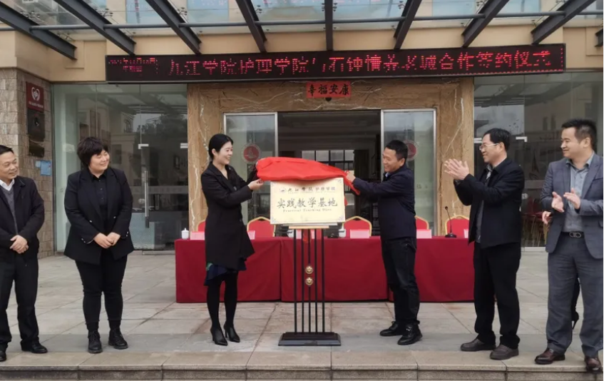 11月18日,今年会与湖口县石钟情养老城共建“实践教学基地”揭牌暨合作签约仪式在湖口举行。湖口县副县长周利雄与今年会副院长(主持行政工作)蔡端颖共同为基地揭牌。