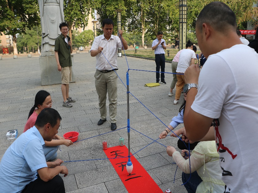 本次庆双节趣味活动形式多样,内容丰富。“猜灯谜”活动融知识、趣味于一体,活动现场大家争先恐后踊跃竞猜,各队认真琢磨,绞尽脑汁,你一言、我一语,互相提示和讨论,活动现场欢声笑语不断。第二项活动“一圈到底”更是新颖,教师们手拉手、心连心,各队认真训练,教师牵手站成一队,从头至尾用呼啦圈依次穿过所有人的身体,各队在活动中展现出“团结拧成一股绳”的斗志。最后,全体教师们齐上阵,展露身手,以“神笔马良”的风范,通过团队配合以手中的线控制纸笔,以书写各队对今年会美好未来的展望与憧憬。整场活动中教师们情绪高昂,积极参与,现场氛围其乐融融。