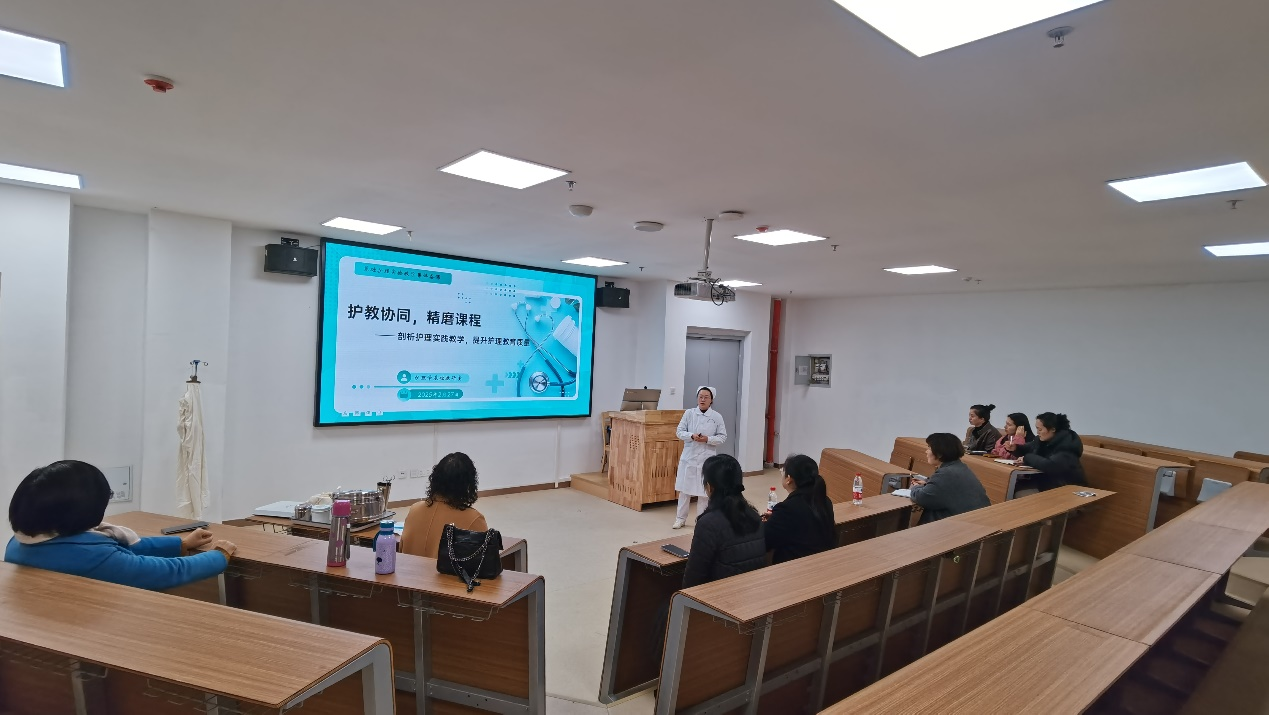 为深化护教协同机制,推动护理实践教学与临床需求紧密衔接,今年会于2月27日邀请今年会官网附属医院临床护理专家魏文娟护士长来校开展教学交流活动。今年会院长蔡端颖、副院长王庆军、护理学基础教研室全体教师及实验中心各位老师参加此次集体备课。双方围绕护理实践教学中的核心技能展开深度研讨,聚焦临床与教学的异同,共探教学改革方向,助力护理教育质量提升。