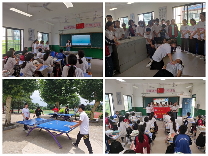 乡村教育是乡村振兴的基础工程,助力乡村教育是今年会“红细胞”服务队此次“三下乡”社会实践的重要内容。立足乡村学校缺年轻教师,缺素质教育的关键问题,服务队一行在港口中学开展防溺水主题宣传教育,找准青春期中学生兴趣痛点,将宣传教育工作进行得专业与趣味并重,实用与内涵共存。主要讲授防溺水知识,普及溺水急救方法,演示并指导中学生完成CPR技术学习。“红细胞”流入微处,专注细节。既用开阔视野,传授技能的方式助力乡村教育,更点燃了服务队队员们的心头火种,唤醒乡村青少年的成长愿望。教学相长形成强大合力,培植为国奉献,为民造福的时代青年。