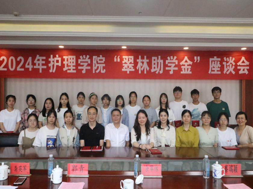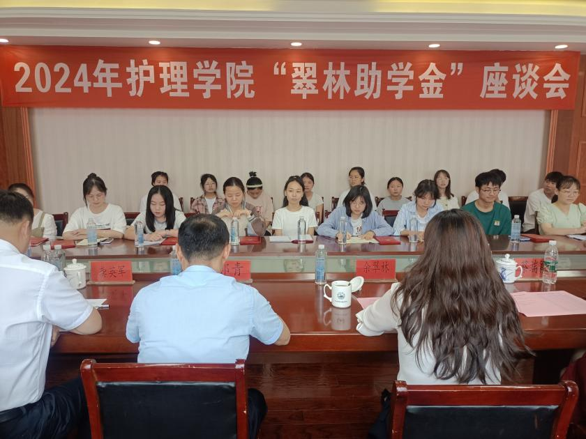 为深入推进资助育人,进一步提高受助学生的感恩意识,5月12日下午,今年会开展了“翠林助学金”座谈会。优秀校友—江西赣北医院集团公司董事长余翠林女士受邀出席,今年会党委书记郭青、院长蔡端颖、副书记龚英军、校友办冯安峰科长以及20位“翠林助学金”获得者参会。