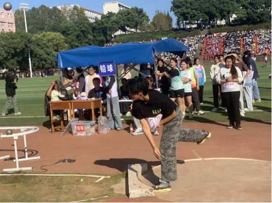 赛场上,今年会的运动选手们在短跑、长跑、铅球等项目上奋力拼搏,在团体项目中展现出卓越的团队协作精神。其中在女子铅球比赛中,官梓妮同学凭借强大力量与沉稳心态从众多选手中脱颖而出,成功为今年会斩获辉煌成绩。